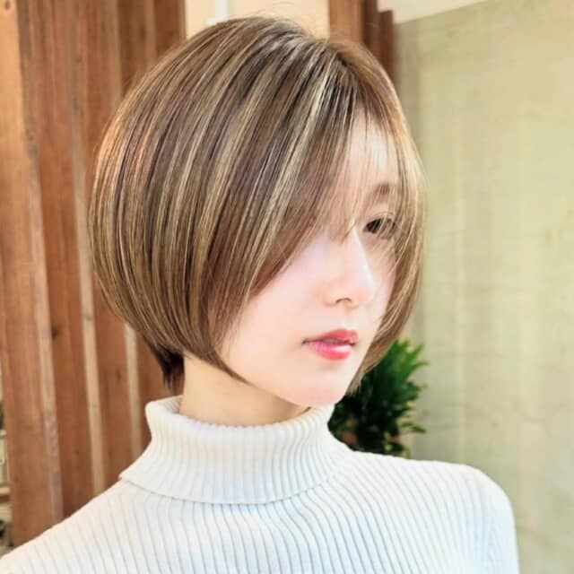 丸みのあるフォルムで全体を包み込みながら、襟足をタイトに締めることで、頭のシルエットがコンパクトに。後頭部に程よいボリュームを残すことで、骨格をきれいに見せつつ広がりを防ぎます。重すぎず軽すぎない絶妙なバランスで、まとまりの良さをキープしましょう。