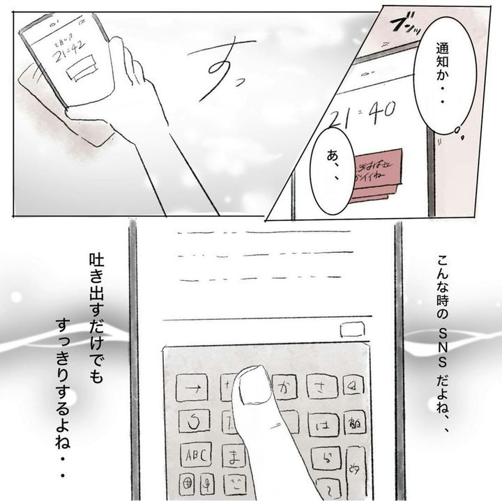 身内に話しても分かり合えず、夫とも温度差があるきちやんさんは、誰かに聞いてもらえたら…という気持ちでSNSで自分の声を打ち明けます。するとすぐに誰かからレスが来たという通知が…。