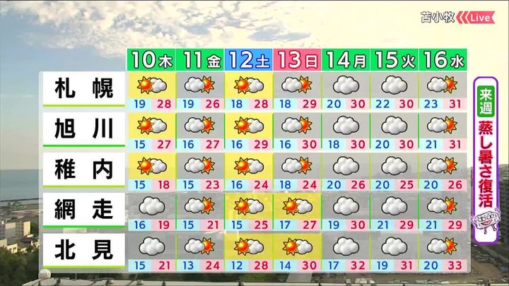 北海道のあす10日(木)の天気と、週間予報を、HBCウェザーセンターの児玉晃(こだま・あきら)気象予報士がお伝えします。