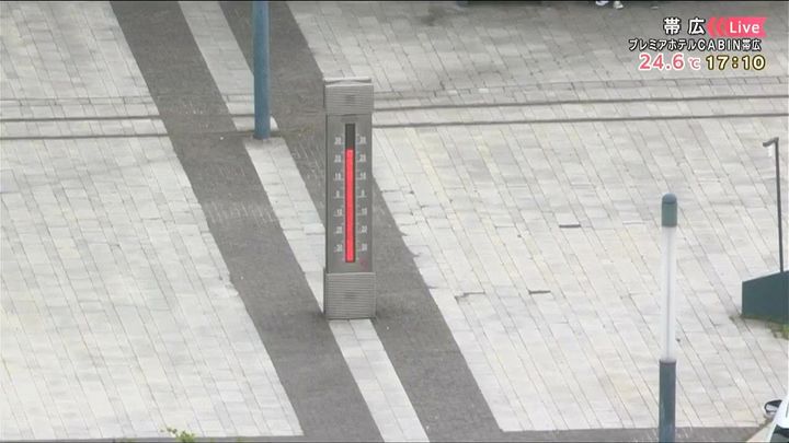帯広駅前の温度計です。いつも温度計は一番上の方まで赤くなっていましたが、きょう9日(水)は30度届いていないですね。アメダスの観測では24度台ですね。きょうの帯広は3日ぶりに猛暑日から解放されました。