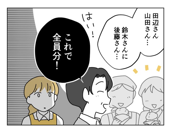 ユナさんは別にシュークリームが食べたかったわけではありません。「ちょっと特別なスイーツを、わざとあげないで、仲間外れにしてやろう」という、その陰湿さが嫌だったのです。周囲のパートさんたちが楽しそうに受け取っているすぐ横で、何も手にせずぽつんと佇むユナさん。これはかなりツラい状況ですね。今まで我慢してきたユナさんでしたが、さすがに堪忍袋の緒が切れたようです。