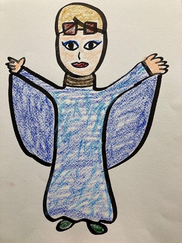 さあそして・・ん??今「クッ」って笑いました?(笑)ワンピースの腕の“ひらひら”も描いて、てるちゃんの全体像が描き終わりましたね。