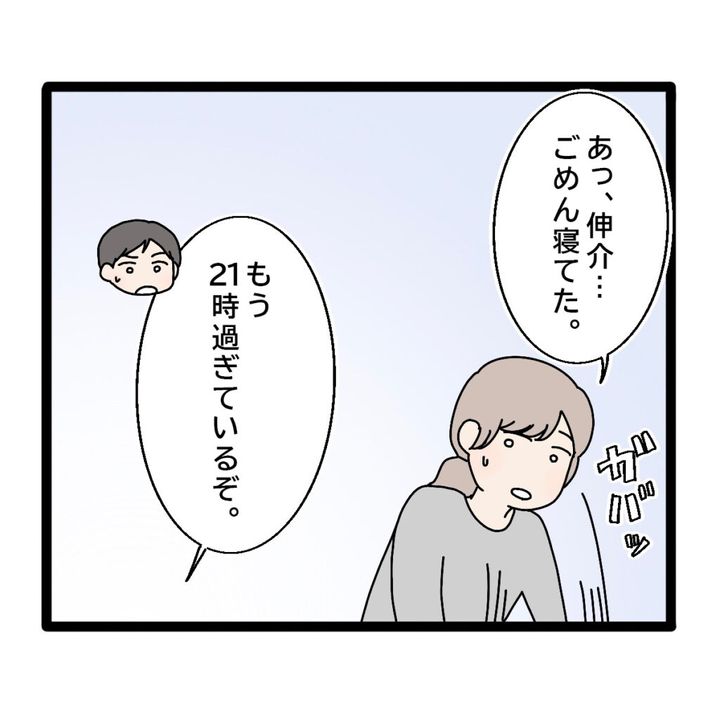 「あっ伸介・・・ごめん寝てた。」慌てて起き上がった私は伸介に「もう21時過ぎてるぞ」と言われて焦りました。そんなに寝てしまっていたなんて。
