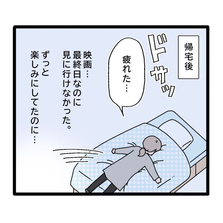 帰宅後、どっと疲れた私。ずっと楽しみにしていた映画はこの日が上映最終日だったのに、観に行けませんでした。ベッドに倒れ込むと、さっき会ったユウカさんのことを思い出してしまいます。