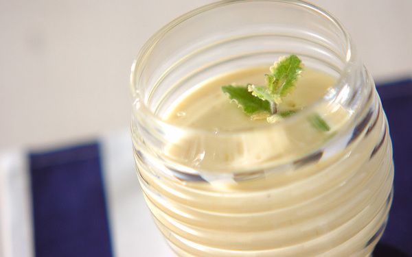 ココナッツミルクや牛乳、生クリームなどで作ったコクのあるスープに冷凍マンゴーを浮かべれば、まるで南国気分のトロピカルスイーツに。冷凍する際は、マンゴーが空気に触れないようラップでぴったり覆ってからフリーザーバッグに入れてくださいね。