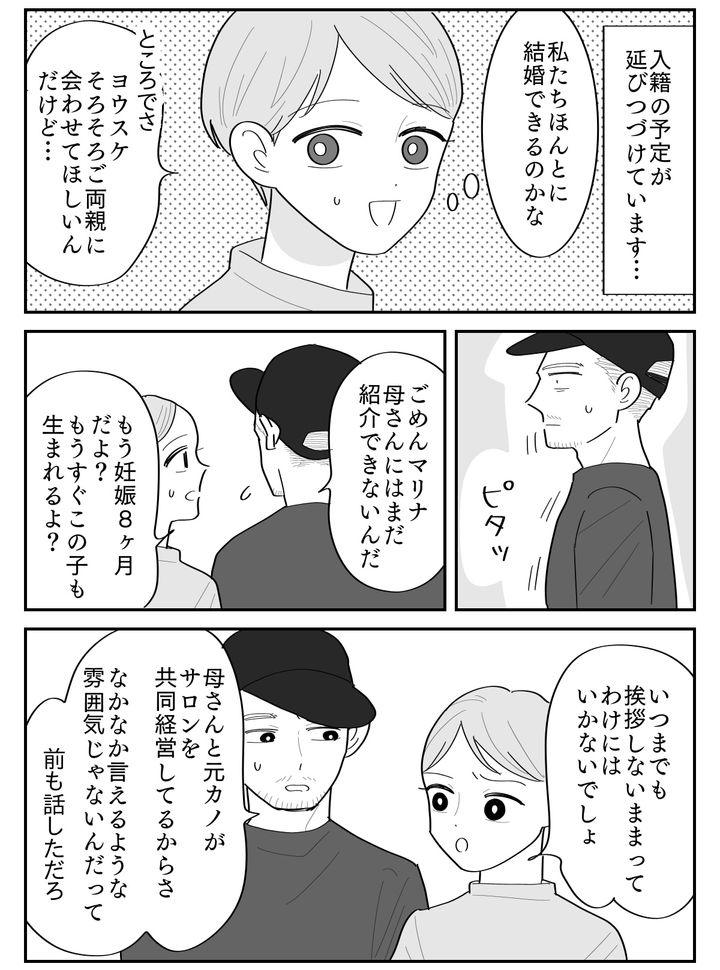 私はマリナ。シングルで5歳の娘リンゼを育てています。実はお腹に子どもがもうひとり。彼氏のヨウスケとの子を授かって、今妊娠8ヶ月なんです! だけどヨウスケはなかなかご両親に会わせてくれないし、「まだ親と話せていないから」と結婚の予定が延びつづけています。待っているあいだもお腹は大きくなって、日に日に出産が近づいているというのに……。どうしたらいいのでしょうか。というか、本当に結婚してもらえるのでしょうか?