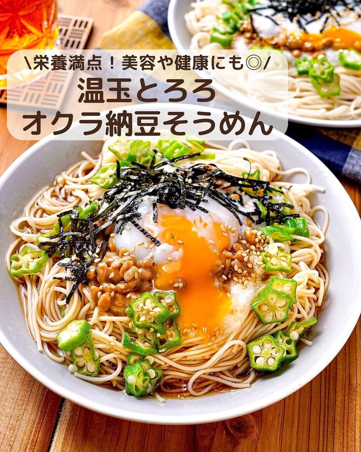 さっぱりとしたのど越しのそうめんと、ねばとろ食材の相性が抜群で、暑い日でもつるっと食べられるアレンジレシピは、おいしくてヘルシーなのもうれしいですね。