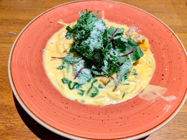 麺・塩・卵・ソース・オイルすべてにおいてこだわりを持って作られているパスタ。わたしがパスタを選ぶ際、家で作るか作らないかで決めています。今回「グリルチキンと南瓜のクリームソース」を注文したのですが、かぼちゃのクリームソースが気になり、絶対家では作らないと思うので注文してみました。食べてみて大正解!! チキンも南瓜もごろごろ入っていて、想像以上に南瓜のクリームソースがおいしかったです。