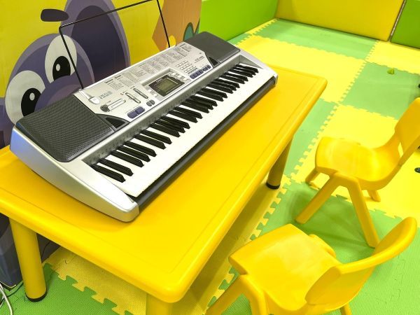多くのお子さんが遊んでいたため写真はないのですが、おままごとコーナーもありました!!その近くには、電子ピアノも!