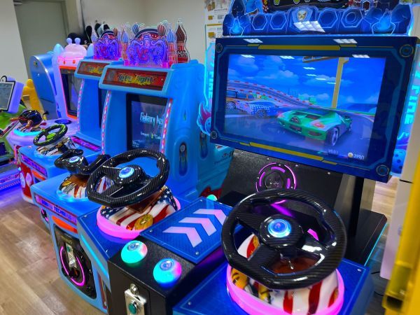 ゲーム機は10台ほどあり、二人で遊ぶことができるタイプも。ゲーム台は、幼児でも遊べる高さです。子どもの横で親も一緒に遊ぶ姿も♪追加料金なく遊べるのは、ありがたい!