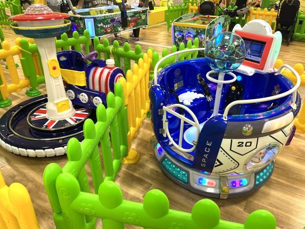 広々とした、乗り物エリア。少し坂になっている所もあり、アクティブに楽しむことができます。身長約140㎝の息子も遊べました!!まさか、パパさんが乗っている姿も!