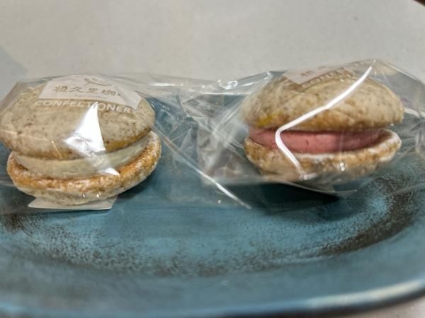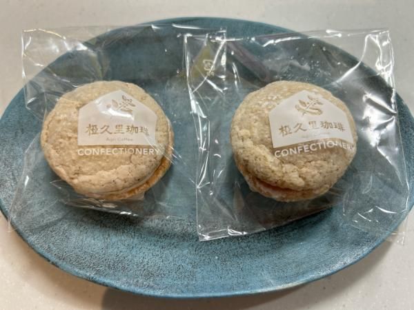 横からの図。コーヒー味を先にいただいたのですが、アーモンドプードルがたっぷりで生地のしっかりした感じと、挟んでいるクリームが濃厚でとってもコーヒーに合う~!!!