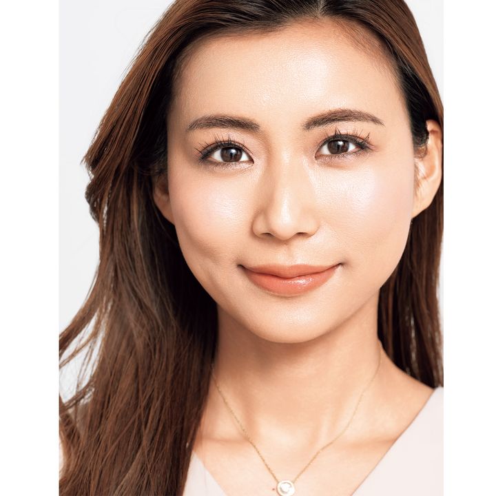 下地を顔全体に伸ばし、ほうれい線の影やもたつきのないハリ肌に仕立てて。口角から耳に向かって引き上げるように塗ることで、ぽにょっとしたお肉もシェイプアップされた印象に。