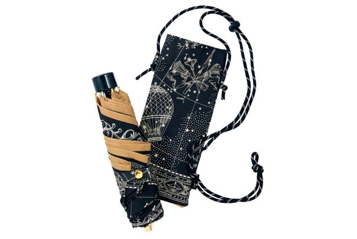 突然の雨にも対応できるコンパクトな折り畳み傘。華やかな柄デザインも開くのが楽しみに。晴雨兼用折り畳み傘¥17,600(マニプリ)