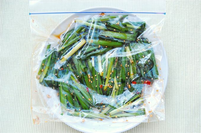 軽くモミモミして、調味料とニラを混ぜ、冷蔵庫でひと晩漬けたら出来上がり。