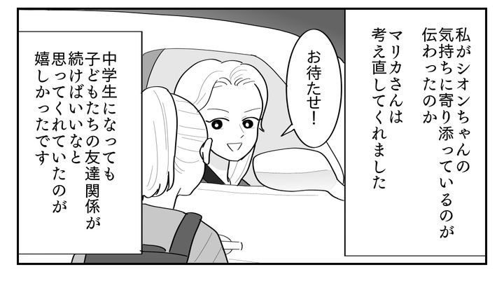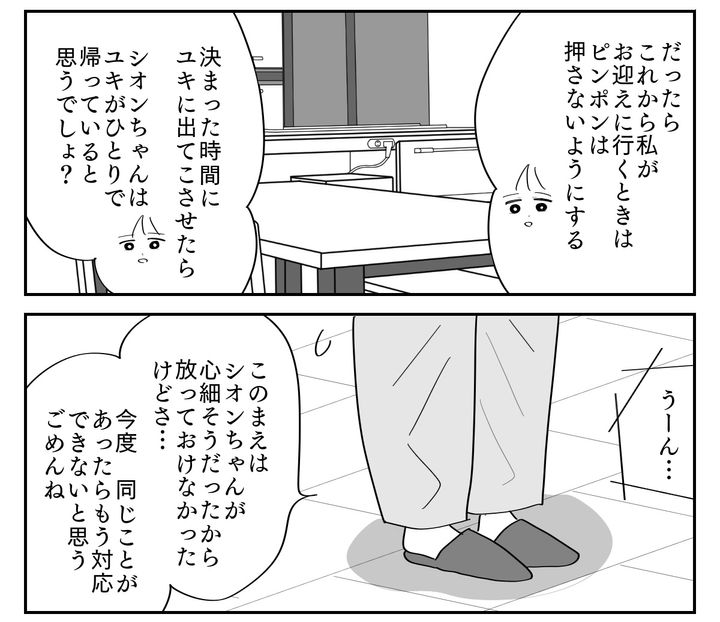 マリカさんは私に対応を丸投げしたことを謝罪してくれて、これからは親が無理なく送迎できる日に遊ばせようという話でまとまりました。