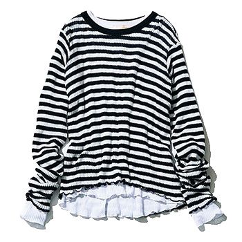 ロンT(2枚セット)/CaRouseLamBRa(ジャック・オブ・オール・トレーズ プレスルーム) それぞれ単品でも使える無地の白と、白黒ボーダーがセット。ボーダーが下だと、もう少しシックに。
