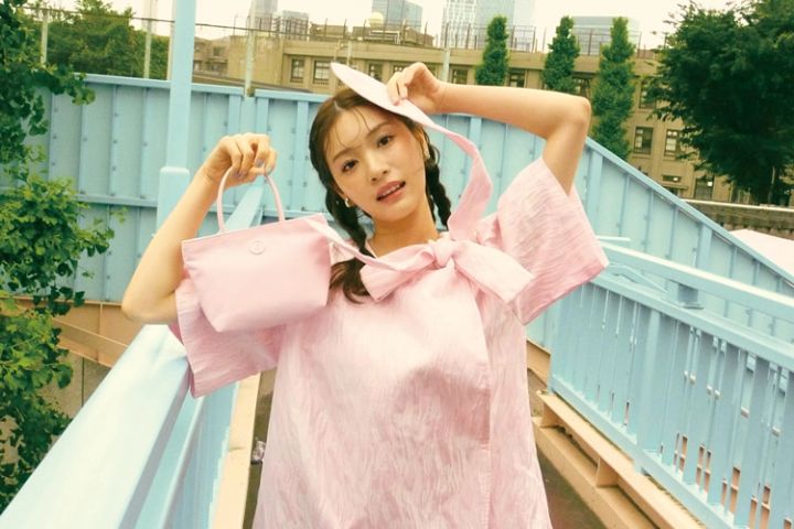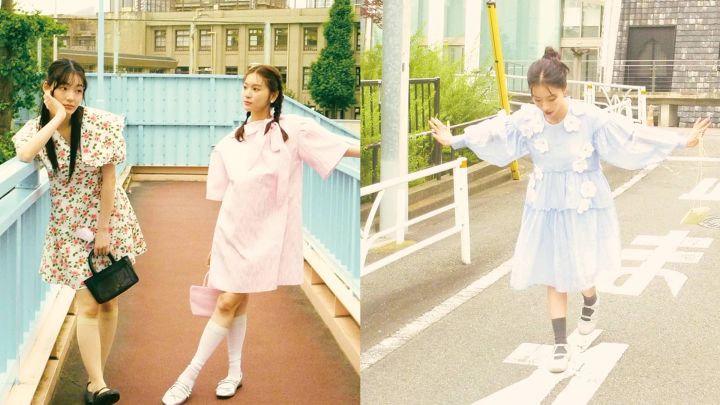 〈右・紅葉のコーデ〉ピンクジャカードワンピース 20,680円/ゴスペル(ザ・ウォール ショールーム)イヤリング 3,520円/Liquem バッグ 14,080円/minitmute(HANA SHOWROOM)メリージェーン 8,900円/チャールズ&キース(チャールズ&キース ジャパン)シアーソックス/スタイリスト私物 〈左・里帆のコーデ〉花柄ワンピース 19,580円/SISTER JANE(ザ・ウォール ショールーム)ローズシュシュ 8,800円/Chapeau d’O (東急プラザ銀座店)リング 22,000円/ete ローズつきバッグ 14,300円/theVirgins バレエシューズ 9,900円/メリッサ(メリッサ シューズ ジャパン)ソックス/スタイリスト私物