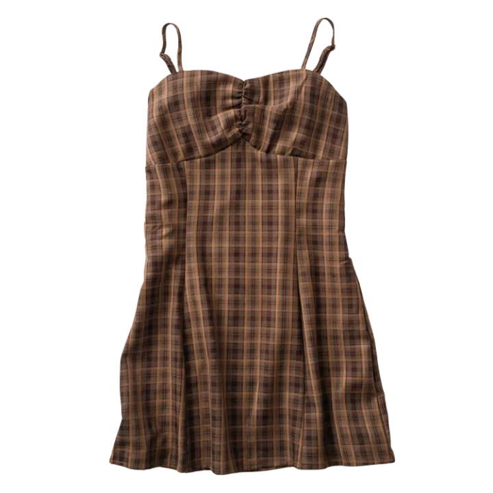 着回し力の高いミニのキャミワンピ。チェック柄が地味になりがちなカジュアルコーデを華やかにしてくれるから、1枚あれば重宝すること間違いなし!