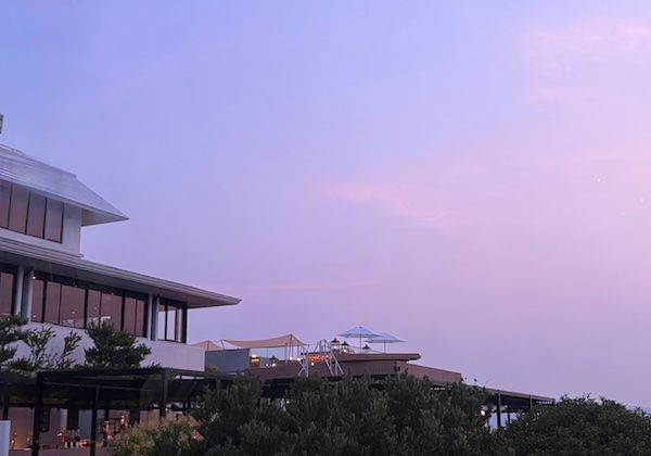 今回はお天気に恵まれ、帰りのシャトルバスに乗る時、ちょうど夕日が沈むのをみられました。街の中心部からそれほど離れていないのに、こんな高台の、空が見渡せる空間で日没が見られるなんて素敵です。