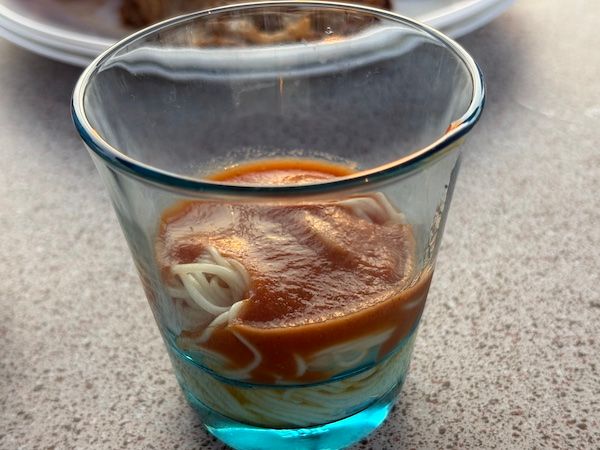 中でも珍しかったのはガスパチョそうめん。素麺を和風だしでなく、トマトベースの冷製スープ、ガスパチョに絡めて食べるとは!夏の暑い時にはもってこいの食感です。