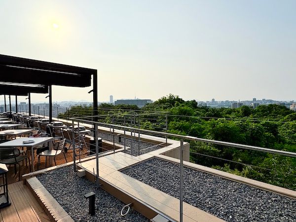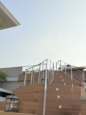 その先にはさらにルーフトップテラスエリアへ登る階段が。これは「天空に導かれる階段」をイメージして作られたものだそうで、一歩一歩踏みしめながら空に向かって上がっていくと、日常から解き放たれていく感じがします。