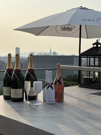 ここルーフトップテラスエリアは、ディナータイムにはあの『モエ・エ・シャンドン』のシャンパンフリーフロー付き価格設定になっているので(大人8,000円)キラキラと輝く福岡の夜景と夜空を眺めながら、日常の喧騒を忘れてゆったりお酒を飲むには最適の場所です。