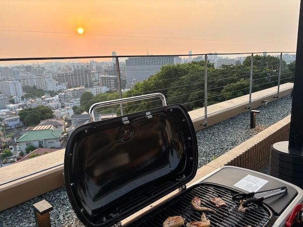お肉を焼きながら飲んで食べてお喋りして・・・夕方の心地よい風を体に感じながら、思い思いの時間を過ごします。 徐々に空が赤く染まってきて、屋内では味わえない開放感と満足感があります。