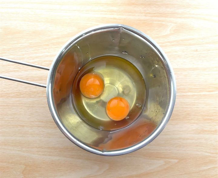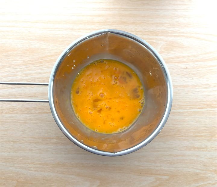 ボウルに卵を割り入れたら、下の画像のように溶きます。