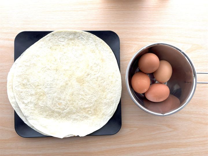 今回使用したトルティーヤは冷凍のものだったので、常温で約1~2時間解凍してから調理に使います。