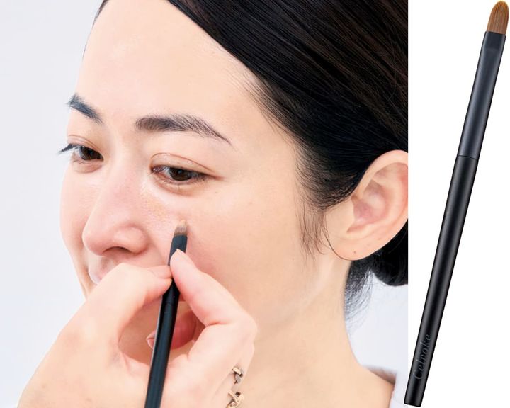 ファンデでカバーしきれない、色ムラなどは手持ちのコンシーラーと2で使用したファンデをブラシと混ぜながら、丁寧に点でカバーしていきます。セルヴォーク マルチ ブラシ A ¥2,970(Celvoke)ファンデーションブラシでトントンと軽く馴染ませると、より自然な仕上がり。ブラシに残っているファンデがほどよく馴染みます。