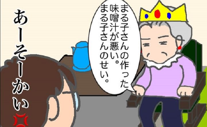 帰宅後、義母にむくみの薬は出なかったことを伝え、まずは減塩からだと言いました。すると「最近のまる子さんの味噌汁はしょっぱいからむくんだ」と言われてしまいました。ちなみに、夫や息子からは味噌汁が薄いと言われているので、これ以上薄くするのは難しいのです。だから義母には、部屋にあるポットのお湯で薄めることを提案しましたが、スルー。あくまでも私が作る味噌汁が悪いようです……。
