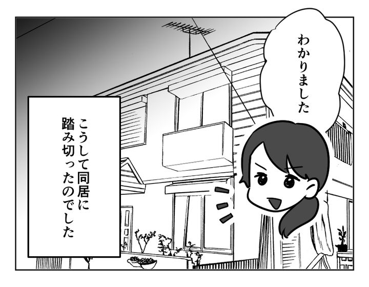 想定していた通り順調に進む同居生活に、正社員への期待を膨らませるチナツさん。うーん……最初は誰でも気が張っているし、お互いに気を遣うため、うまくいっていると見えてしまうことがあるのです。本当に大切なのは「これから」。慣れが出始めて、一つひとつの行動に緊張感がなくなってきた頃に不満が溜まり、すれ違いが生じ始めるのではないでしょうか。まぁこのままうまくいけば、それが一番。平穏な日々が送れることを願っています!