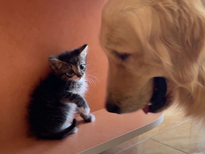 3. ゴールデンレトリバーと子猫の“はじめまして”が愛おしい