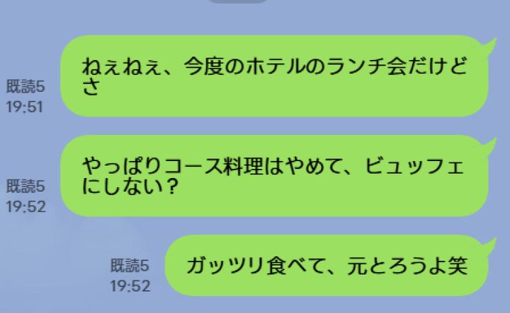 3. 「コース料理はやめてビュッフェにして元とろうよ!」仲良しグループに本音を送信!すると思わぬ事態を招くことに!