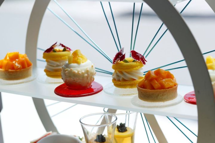 鮮やかなイエローやオレンジを基調としたフレッシュな彩りのスイーツ、セイボリーに思わずうっとり見惚れてしまいます…。