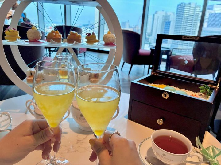 写真映えするアフタヌーンティーを撮り終えたら、いざ乾杯!
