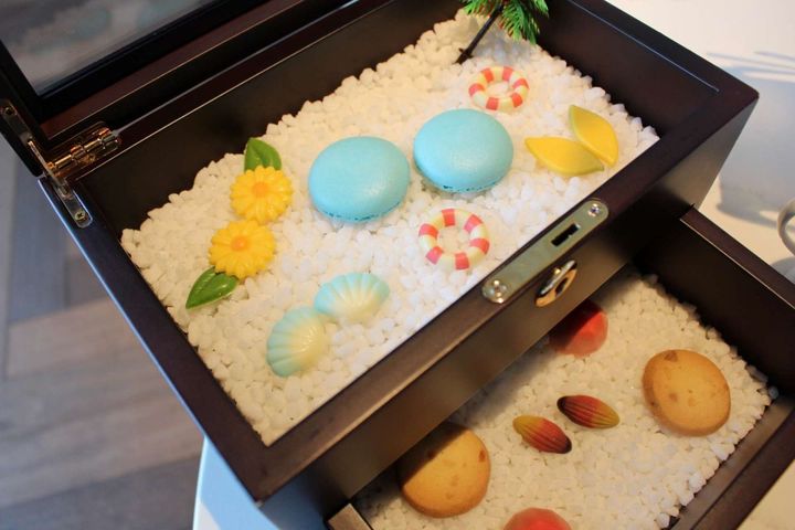 「トロピカルアフタヌーンティー」は、カハラお馴染みのケーキスタンドとジュエリーボックスで提供されます。