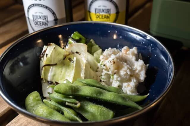 ▲おつまみに最適、ざく切りキャベツや枝豆