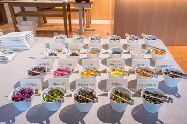 「梅昆布」や「鮭ちりめん」「ちょい辛野沢菜」など、20種類を超えるトッピングや漬物などが並ぶ様子にテンションが上がります。エトワ木更津から車で5分ほどの「道の駅木更津 うまくたの里」で売られている「たまりらっきょう」などご当地の味もありました。