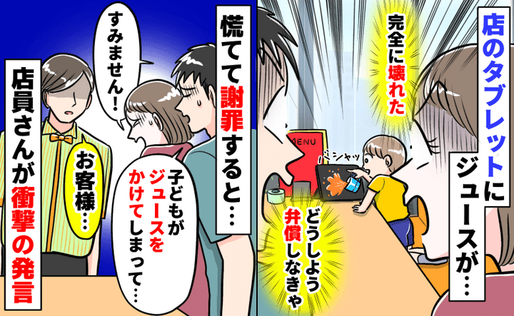 店のタブレットにジュースをバシャッ!「壊れた…弁償しなきゃ」え、嘘でしょ!?謝罪すると衝撃の発言が