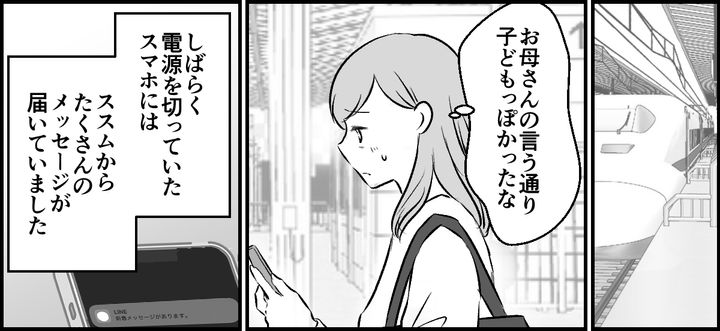 私はサヤカ。夫のススムと2人でゲームをしていたら、ススムから「へたくそ」と暴言を吐かれました。ちょっとしくじっただけなのに……。あまりにも腹が立った私は、実家へ帰ることにしました。私の実家は新幹線で3時間。いくらススムでも追っては来られないでしょう。明日からは仕事もありますしね。少なくとも私の気が済まないかぎり、家に帰るつもりはありません。ススムからLINEや電話がきていますが、電源を切って無視しようと思います。