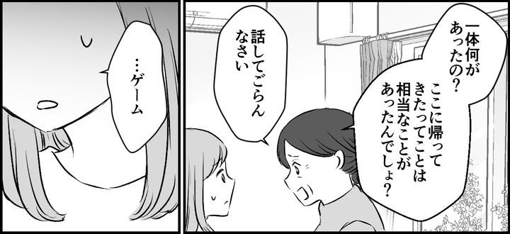 実家に逃げ込んでから、10日ほど経ったとき、両親もだんだん不審に思い始めたようでした。「一体何があったっていうの? 実家に帰ってきたっていうことは、相当なことがあったんでしょう? お母さんに話してごらんなさい」仕方なく私は実家に来た経緯を話しました。すると……母の顔に明らかに呆れと失望の色が浮かび、しぶしぶ帰ることになりました。