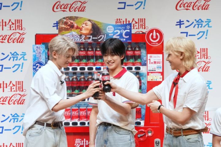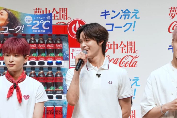 K「僕たち普段からコカ・コーラが大好きで、家でご飯を食べているときも、外でご飯を食べるときも飲んでいます。ライブ後やダンスの練習のあとなど、汗をかいたあとに飲むのが大好きです。