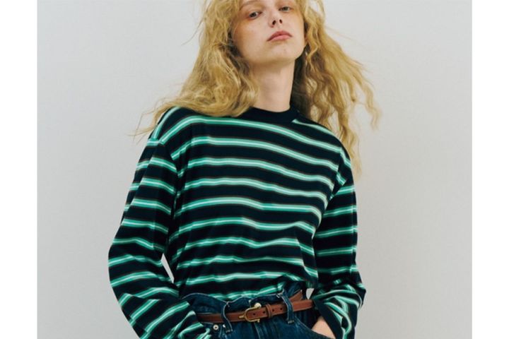 定番のボーダーにはマリンのイメージがあるのに対して、ランダムボーダーは細いピッチを不規則に繰り返すことで、古きよきアメリカンカレッジムードが漂う。落ち着いた色がベースなら、手持ちのワードローブとも好相性。