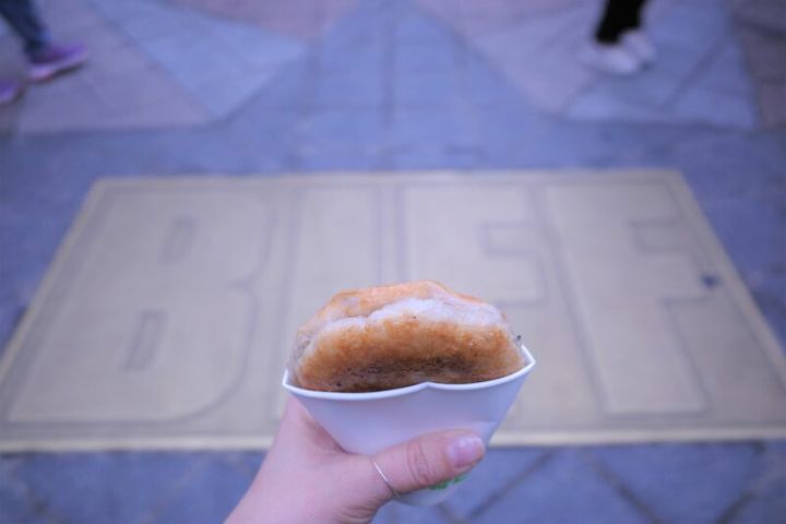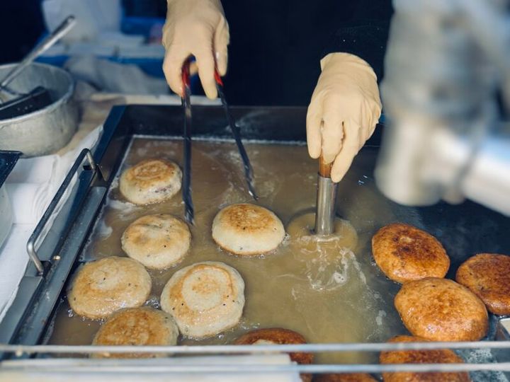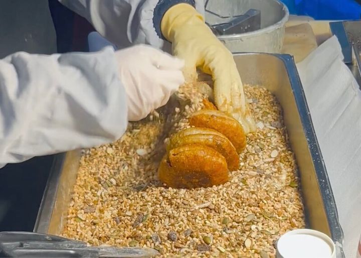 たっぷりのマーガリンで揚げ焼きにした中に、ひまわりやかぼちゃの種、ピーナツやアーモンドなどをたっぷり入れたもの。もちもちの生地にかぶりつくと、ジュワッとはちみつがしみ出てきます。どの店も行列ができていますが、進むのは早いのでご安心を。