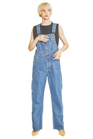オーバーオールの無骨なイメージも、イエローのパンプスがあれば女性らしい元気のよさに好転。スエード素材を選ぶことでそろったあせた質感も色浮きしないポイントに。