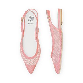 ピンクメッシュミュール(1)/Emma Francis そのままはくのはもちろん、ソックスを合わせてアレンジも可能。抜けにもつながるメッシュデザインは、可愛い色のまろみをそぐのに最適。