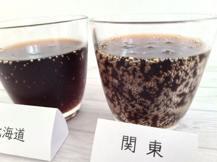 一方、北海道のコーラはややおとなしめの音で、炭酸がやや控えめな印象。、どちらのコーラも、同じ条件(冷蔵庫で1週間ほど)で保管していたため、温度や振動などの影響ではないと考えられます。