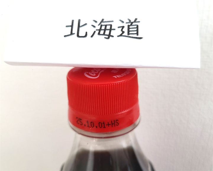 製造工場についてコカ・コーラに問い合わせてみたところ、「ペットボトルのキャップに記載されている識別アルファベットで製造工場がわかる」とのこと。実際にキャップの側面を見ると、「賞味期限+アルファベット」が印字されています!今回筆者が用意したコカ・コーラには、それぞれ「HS」「W」と記載がありました。